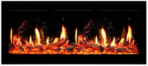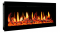 Лицевая панель камина выполнена из стекла и имеет плоскую форму. Визуализация пламени создается на основе технологии 5D: за счет совместной работы зеркального ЖК экрана и муляжа дров с эффектом тления.